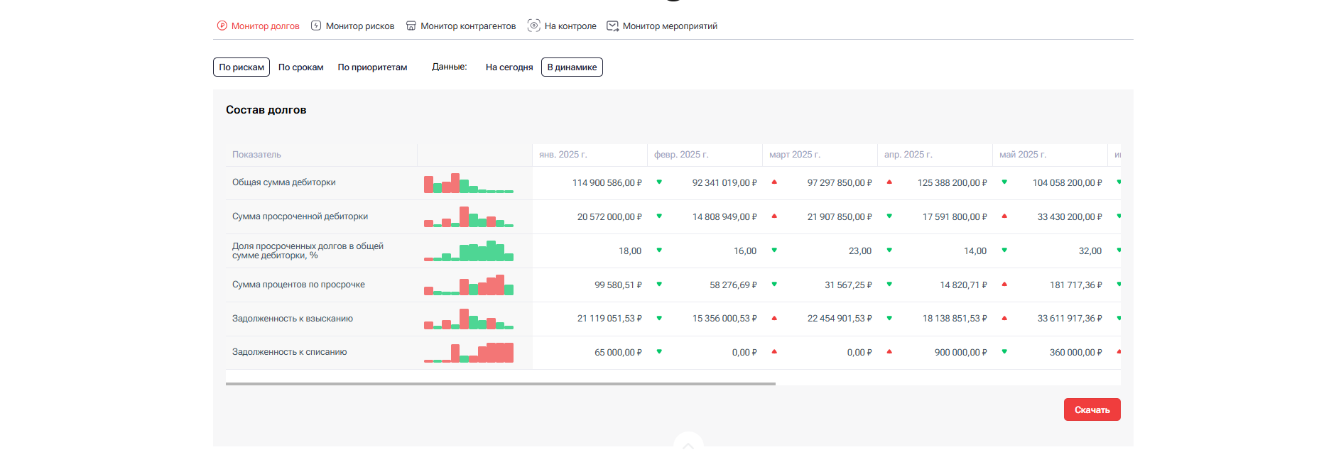 Дебиторская задолженность общая и по контрагентам в динамике
